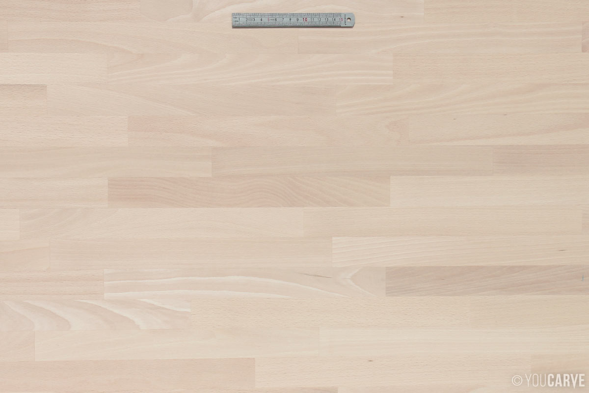 Hard and homogeneous wood, the constitution of which does not generate splinters. Glued laminated beech is composed of several solid beech strips assembled by gluing, making it possible to obtain homogeneous pieces of large dimensions while guaranteeing dimensional stability.
